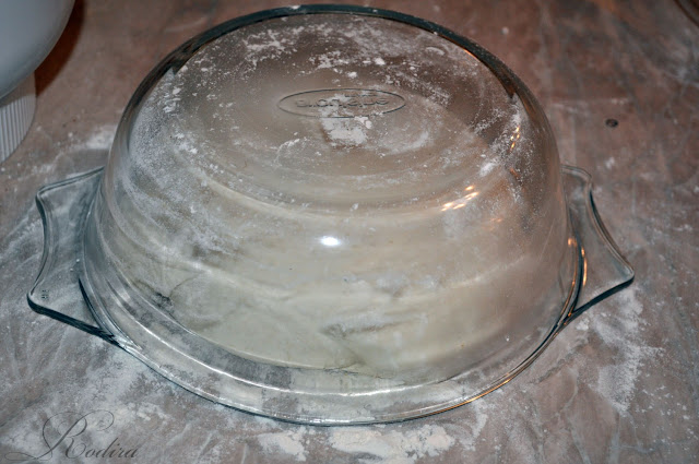 После этого оставить тесто на час, складывая его каждые 20 минут. То есть у Вы должно три раза в течении часа сложить тесто. Я оставляю тесто накрыв его от заветривания стеклянным колпаком: