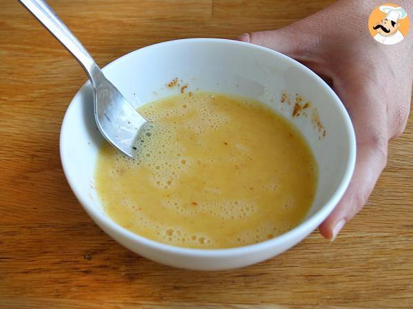Добавьте щепотку соли, паприку и порошок карри. Хорошо перемешайте и оставьте готовиться на несколько минут.