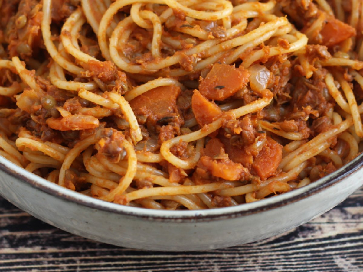 Какой основной ингредиент заменяет мясо в вегетарианских спагетти болоньезе?