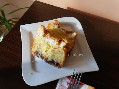 По време на печенето белтъците много се издуват, но когато кейка се охлади спаднаха. При печенето сладкото падна на дъното, а по план трябваше да си остане в средата :))), но и така доста ни хареса.