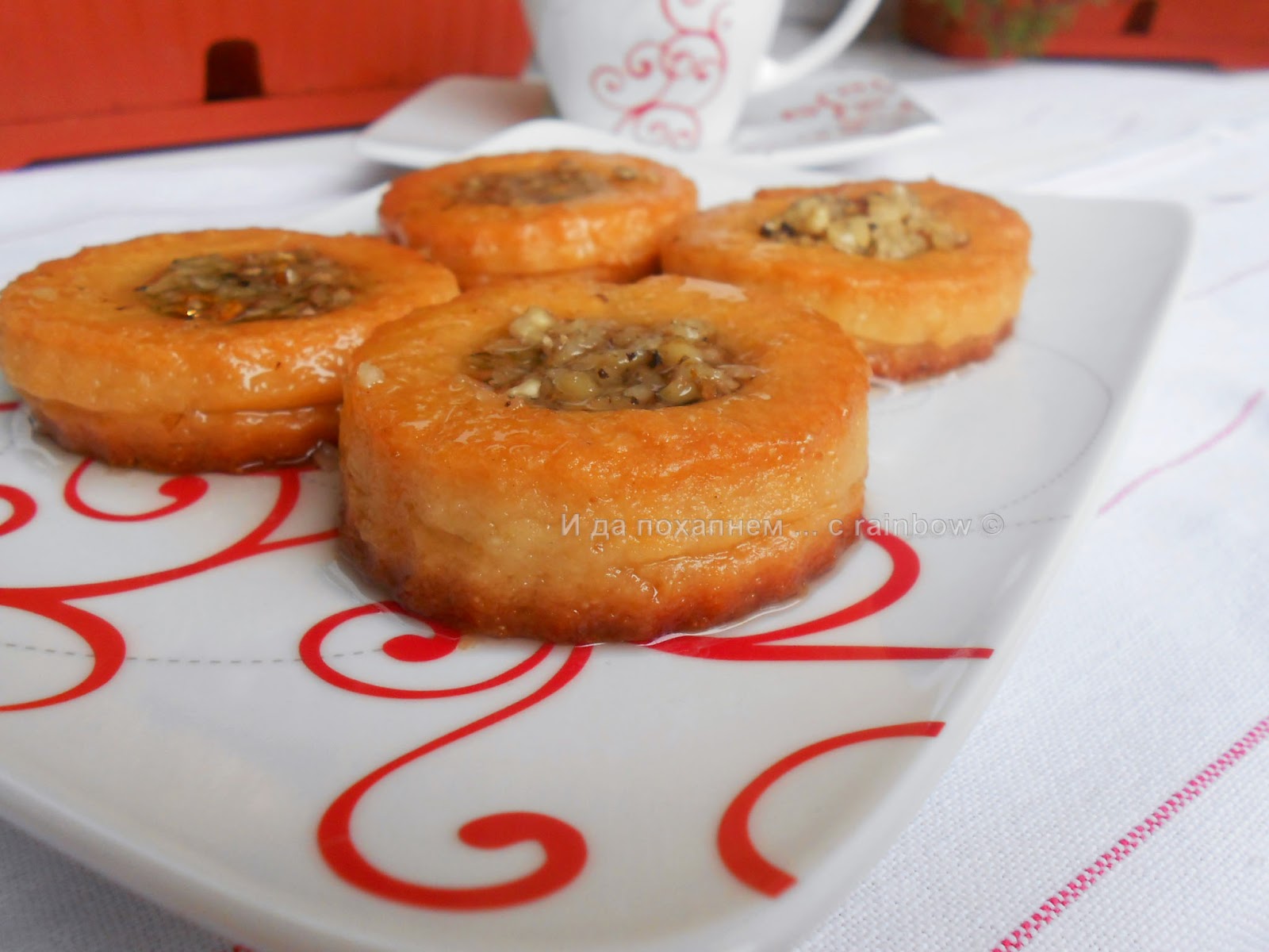 Изваждаме, пълним дупчиците с орехи и още топли поливаме с охладения сироп. Оставете да престои в сиропа поне 12 часа, а най-добре 24.