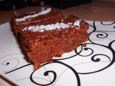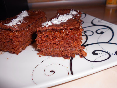 Днешният сладкиш, който ви предлагам е най - вкусното нещо с тиква, което съм яла. Много шоколадов, много сочен и ароматен. Рецептата е на Петрина и не съм променяла нищо в нея, мерките са точни и ако следвате рецептата резултата е ето това, перфектно, ароматно тиквено блокче с много шоколадов вкус: