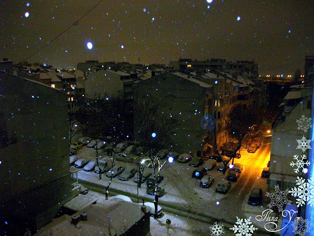 Това е един тих и спокоен нощен пейзаж, който снощи съзерцавах от балкона ми...а снега се сипеше леко и покриваше уличната грозотия.