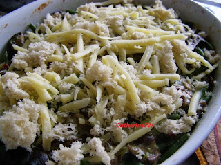 11. Вторую половину сыра смешать с хлебными крошками, выложить на фасоль