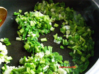 4. На среднем огне на масле обжарить чеснок и лук