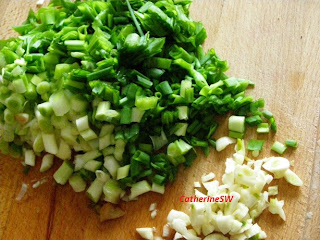 2. Чеснок порубить, лук мелко порезать, грибы разморозить и порезать