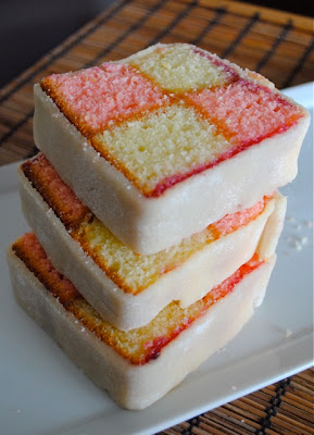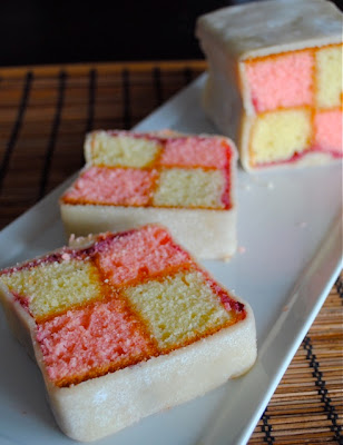 Тему традиционного английского послеполуденного чаепития можно развивать бесконечно: тут тебе и тоненькие изящные сэндвичи со свежим огурцом, копченым лососем, ветчиной и т.п., и песочные рассыпчатые сконсы с топлеными сливками и джемом, и разнообразные кексики и тортики... Один из этих "кексиков-тортиков" я вам сегодня и предлагаю. "Баттенберг" - типичный английский кекс, очень яркий и приметный: на срезе он выглядит как фрагмент шахматной доски!