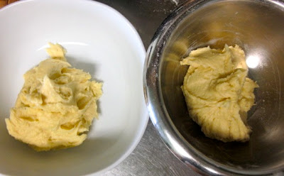 В одну из частей постепенно, по две-три капли, добавляем пищевой краситель, пока тесто не приобретет приятный глазу розовый цвет :). Красители разные, и вкусы тоже, поэтому с количеством краски определяйтесь сами.