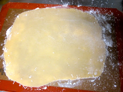 Марципан раскатываем в тонкий прямоугольный пласт толщиной примерно 2 мм. Если марципан липкий, то рабочую поверхность и скалку можно слегка присыпать сахарной пудрой. Ширина марципанового прямоугольника должна быть чуть больше длины кекса, а длина - чуть больше периметра кекса на срезе.