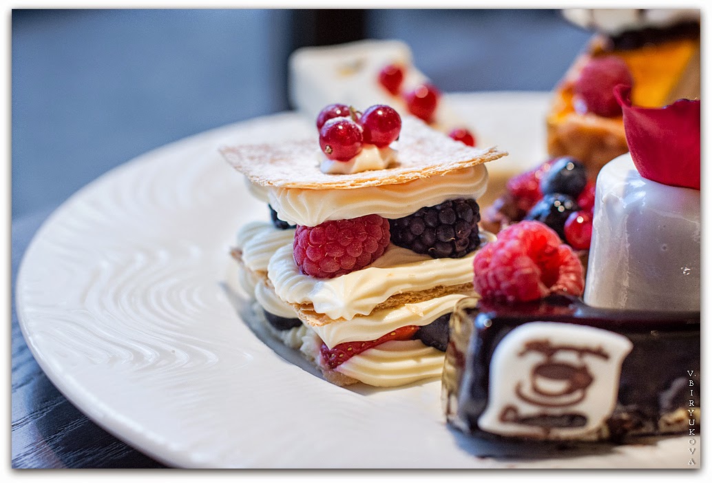 Геометрия форм различных пирожных, блестящая зеркальная глазурь и россыпь свежих ягод завораживают взгляд.