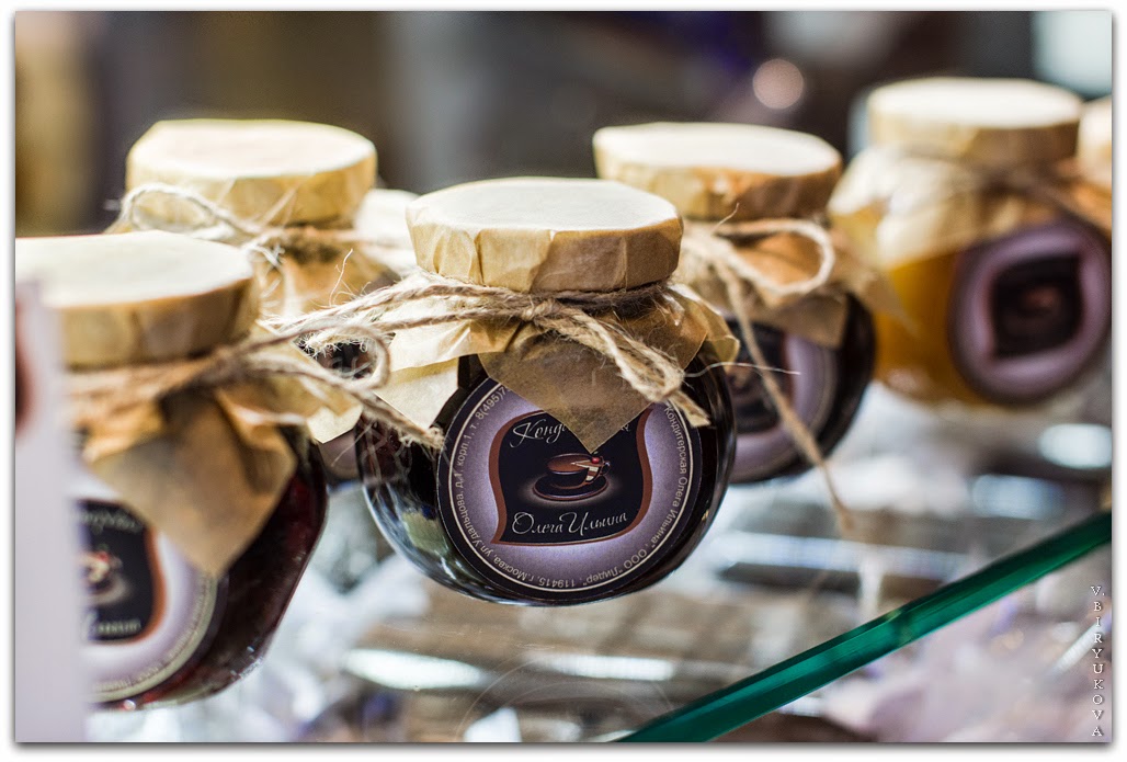 Действительно, от обычных кондитерских это место сильно отличается – бесспорно, в лучшую сторону. Красочная витрина с широким ассортиментом пирожных и тортов, выполненных в лучших европейских традициях, но с ненавязчивыми авторскими акцентами, приковывает к себе внимание посетителей. Здесь также есть конфеты ручной работы, французские пирожные макаронс, и – что совершенно нетипично для российских кондитерских, но столь распространено в Европе, – баночки с домашними конфитюрами и медом.