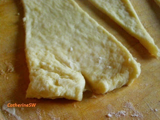 желток и 1 ст ложка молока для смазывания круассановСПОСОБ ПРИГОТОВЛЕНИЯ:1. Приготовим слоеное тесто. 2. Раскатаем тесто прямоугольником до толщины 3-5 мм.