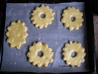 7. Тесто раскатаем в пласт примерно 0,5 см толщиной, Вырежем кружкой коржики, с помощью острого ножа сделаем волнистый край.