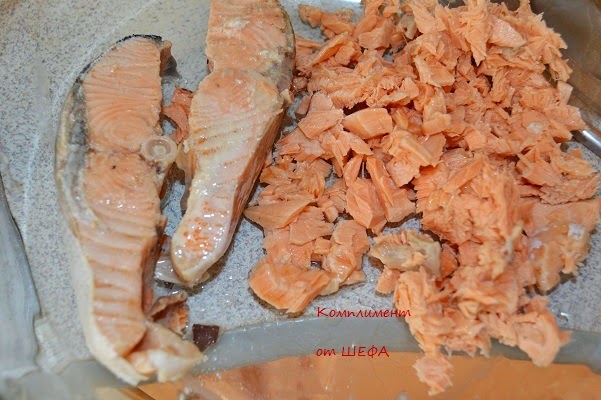 Рыба (у меня треска и семга) - 300-400 гр.