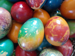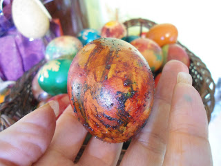 естествено боядисахме и с памук напоен с различни цветове боя,в който увихме яйцето