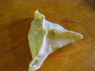 12. В центр лепешки кладем начинку и защипываем в виде треугольника