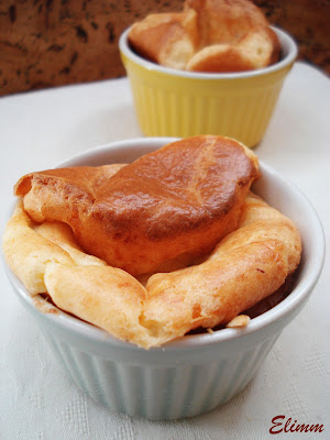 Разделете жълтъците от белтъците. Разбийте белтъците на сняг с щипка сол, а жълтъците прибавете един по един към поохладената смес. Накрая добавете белтъците, като се стремите сместа да остане пухкава. Подгответе порцелановите формички за суфле или формички за крем карамел, като обилно ги намажете с масло. Напълнете формичките с готовото тесто и поставете в предварително загрята фурна на 200 градуса. Печете около 20 - 25 мин., докато се надигнат и придобият златист цвят. Сервирайте топло!