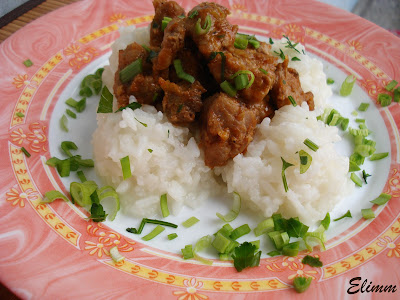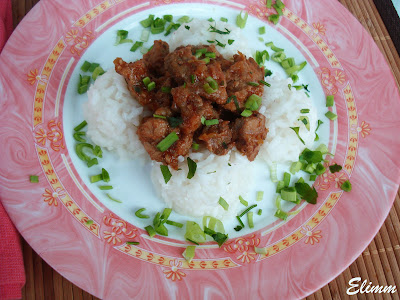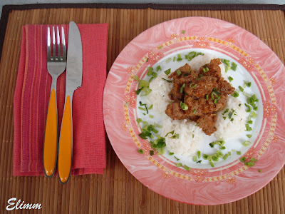 Когато сервирате поставете на дъното на чинията от ориза, а върху него разпределете месото.