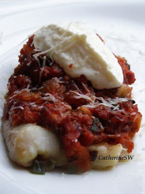 10 Для соуса-крема смешаем вместе творожный сливочный сыр, йогурт и тертый пармезан. Украсим блюдо.