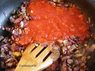 5. На масле на среднем огне обжарим чеснок, перец и лук пока лук и чеснок не станут мягкими. Добавим порезанный лист шалфея и тмин. Еще немного обжарим