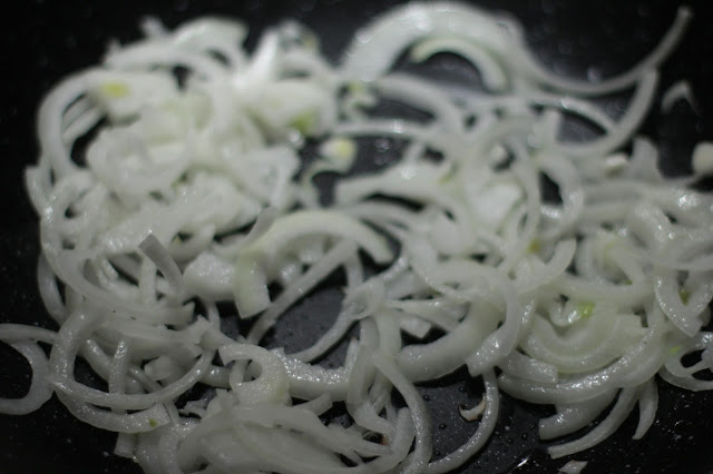 Лук очистить, нарезать, кинуть на вок сковороду и подрумянить на большом огне 2-3 минуты