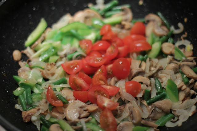 Обжаривать до готовности всех овощей и пока соус не впитается.