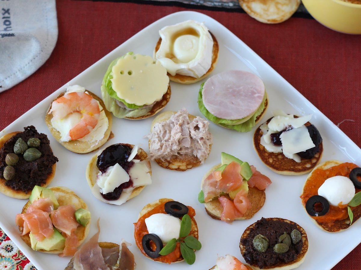 Блинная тарелка с начинками - идеальный разнообразный аперитив для праздничного сезона