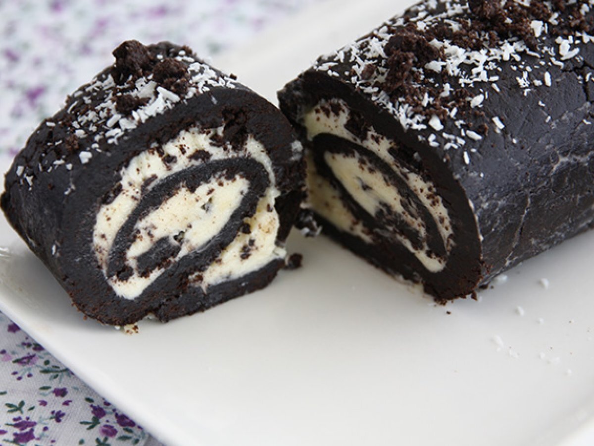 Вам нравится печенье "Орео"? Сделайте из них торт! Но не просто торт... Выбирайте беспроигрышный вариант, когда речь идет о кондитерских изделиях: рулетный торт ;-) Это отличный способ собрать все любимые вами вкусы Oréo в одном большом десерте! Следуйте пошаговым инструкциям по приготовлению этого рулета, используя наши фото/письменные и видео объяснения. Вы ничего не пропустите!